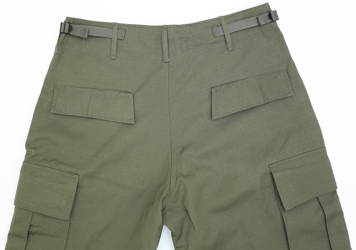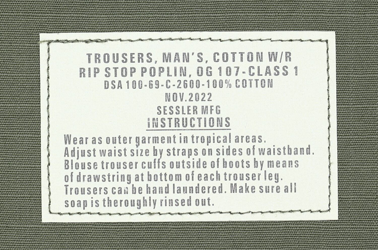前立てはボタンフライからジッパーフライに変更され生地は100% Cotton Rip Stopの薄地で破れ防止の素材になりました。