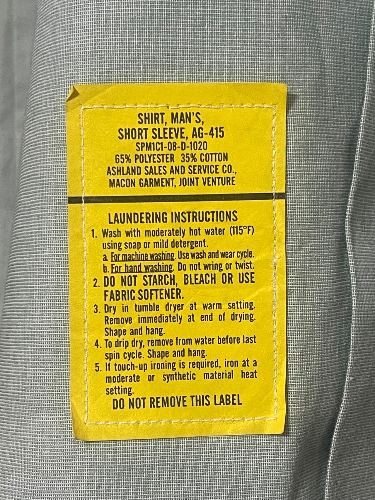 洗濯指示は黄色タグ(MIL-SPEC仕様)