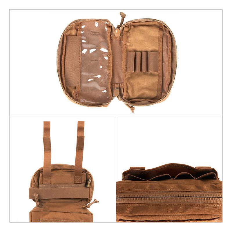 ベストやプレートキャリアに合わせて使用するアドミンポーチです。 裏面のバンド、ベルクロ、モールなどを使って、ベストやプレートキャリアに固定します。 内部スペースが広く、アクセサリー類の収納に大変便利です。 前面にモールやベルクロも配置しており、拡張性も抜群!