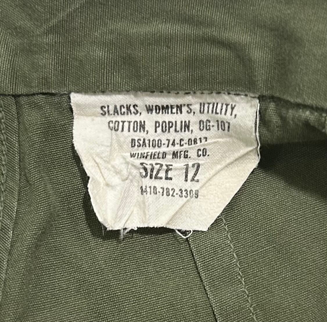 女性用 OG107 陸軍 vietnam ナム戦 ノンリップ OD上下セット usarmy nurse ナース 第44衛生旅団